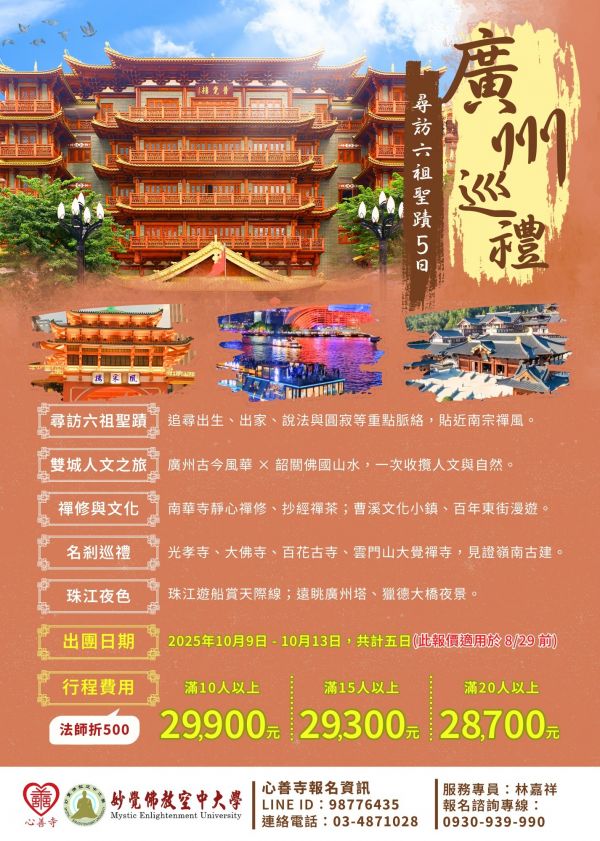 廣州巡禮 · 尋訪六祖慧能聖跡 5日朝聖之旅(2025-10.09~10.13)