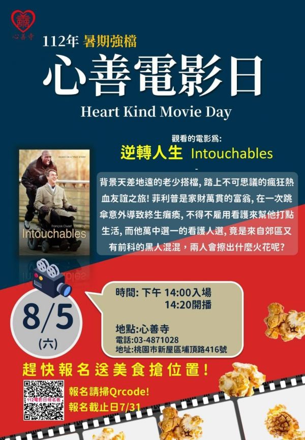 此次的電影日活動將在 2023/08/05週六下午14:00舉辦,歡迎欲參加的大眾 用手機掃下方海報的QR-CORD報名哦!