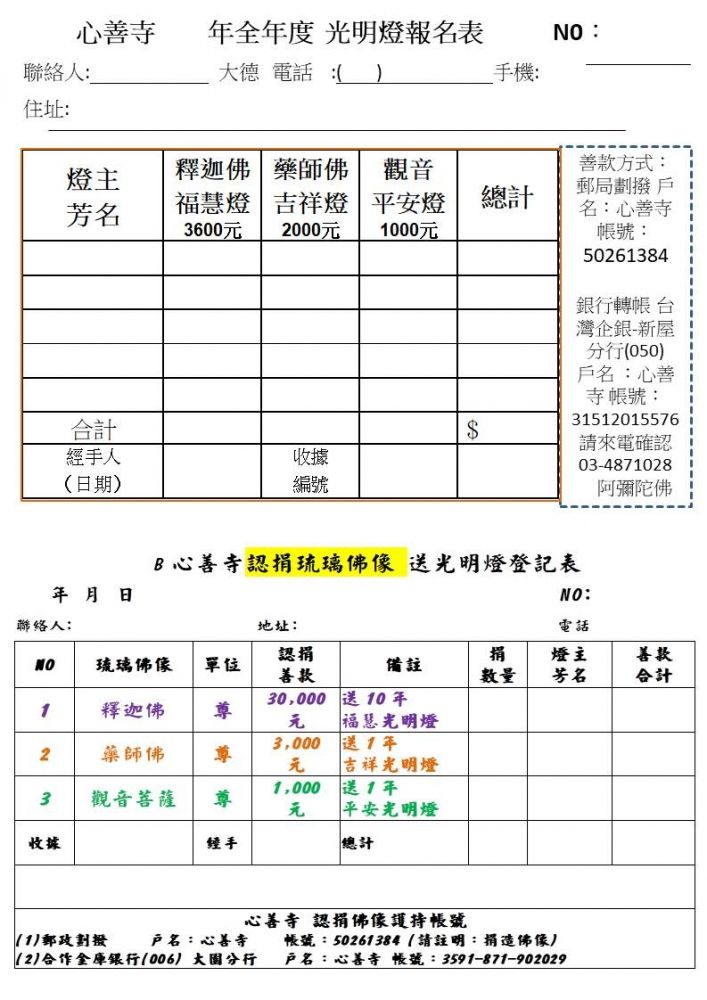 也可下載 下方報名表 使用傳真 或親臨心善寺報名