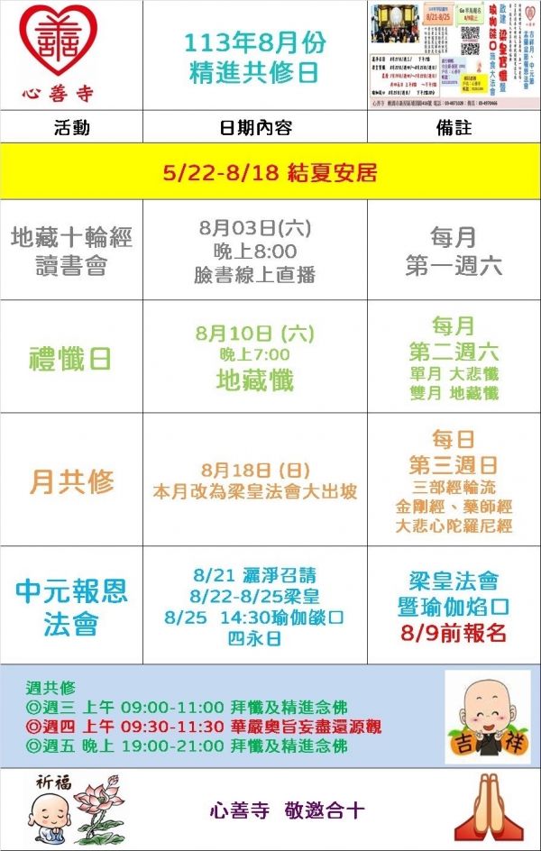 2024年08月份法會公告