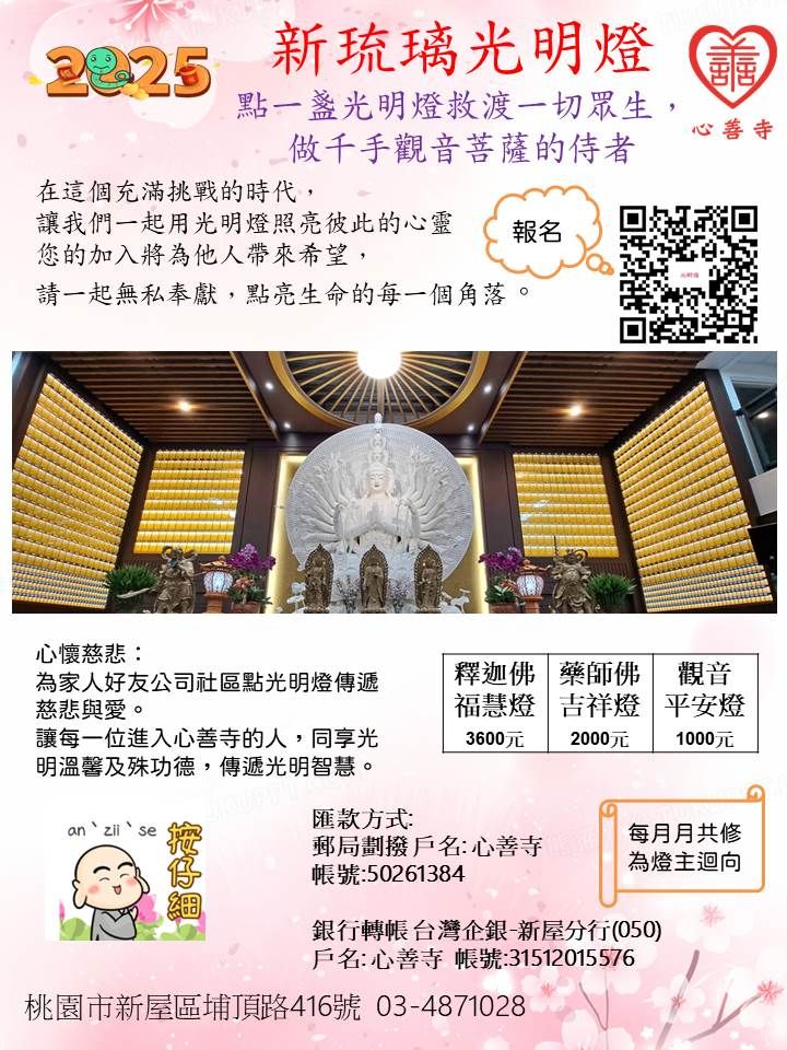 歡迎大家發心~!供養年度光明燈發心的報名,請點選下方連結報名:2025年 全年琉璃光明燈報名