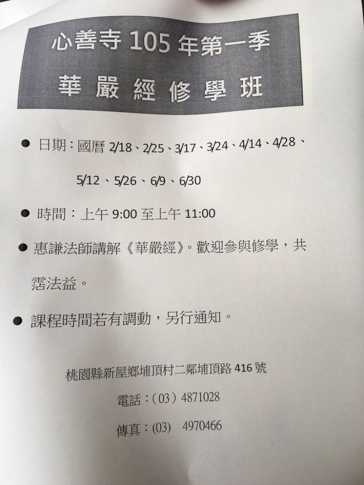 一樣 每個月 都有不固定的 週四 舉辦 華嚴經講課(寒暑假休息)!實際的上課 日期 如下圖所示!