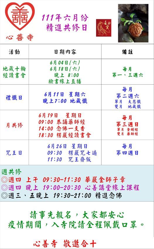 獻上 6月的行事曆,邀請您撥空認識與參加~