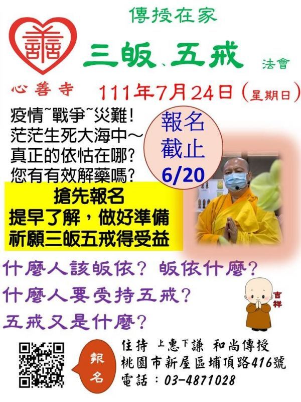 2022年07月24日三皈五戒法會報名公告